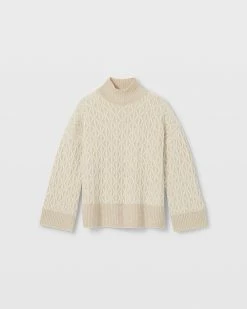 Diamond in the rough. This turtleneck sweater is a standout with its intricate diamond knit and relaxed silhouette in a luxurious blend of cashmere and silk. We love this top paired over a high-waisted skirt or a really great pair of jeans.