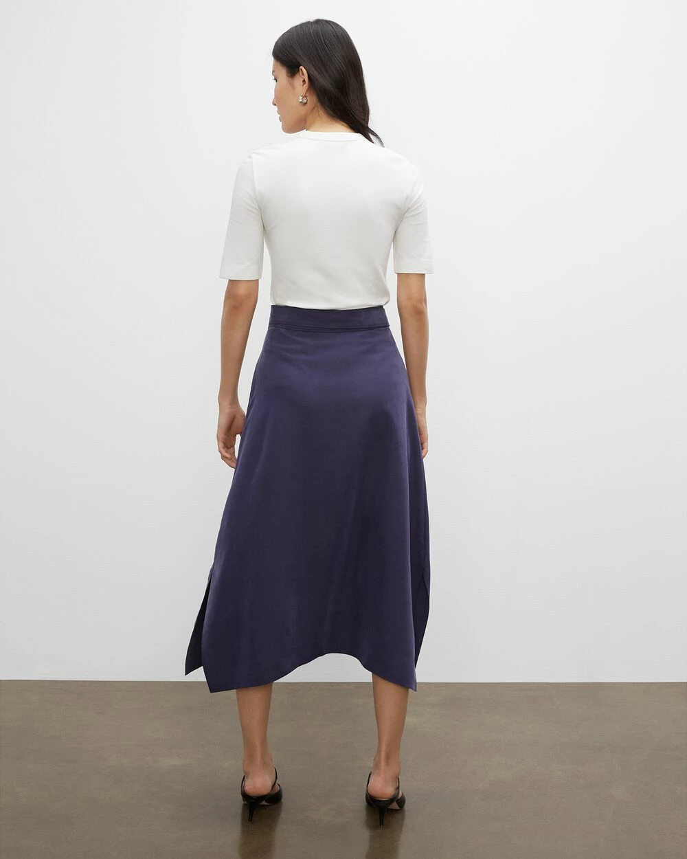 For now and later. This lightweight midi skirt features a flattering high-waist silhouette and delicate drape-front detail. The ankle length lets you style it with sandals during the last days of warmth and with ankle boots as the temperatures cool.