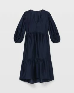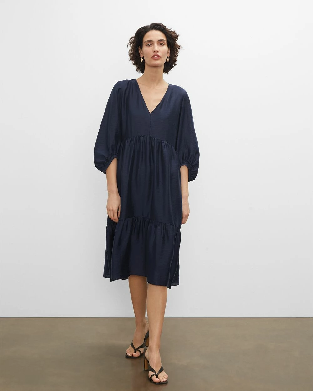 This one’s a breeze. With a billowy silhouette, tiered design, and hint of shine, this midi dress is destined to become your new go-to. Pair it with sandals, sneakers, or even ankle bootsβit’s the easiest way to get dressed and out the door. Lined with recycled polyester. By turning industrial waste and post-consumer waste into new product, we are repurposing plastic and reducing our dependence on virgin petroleum-based materials.
