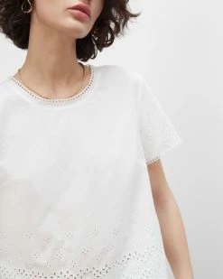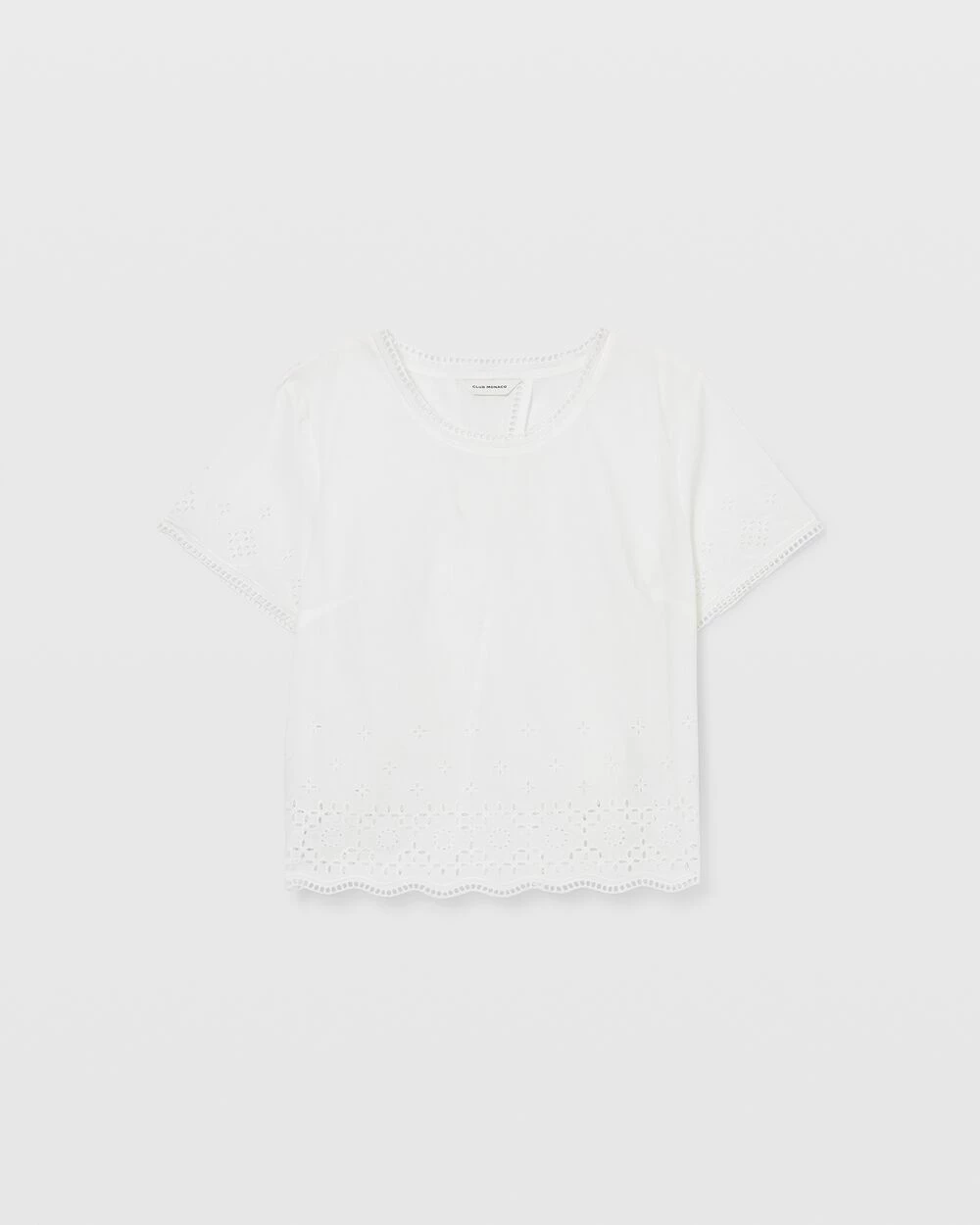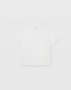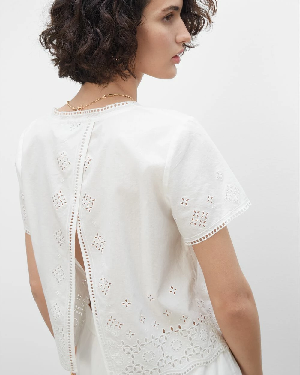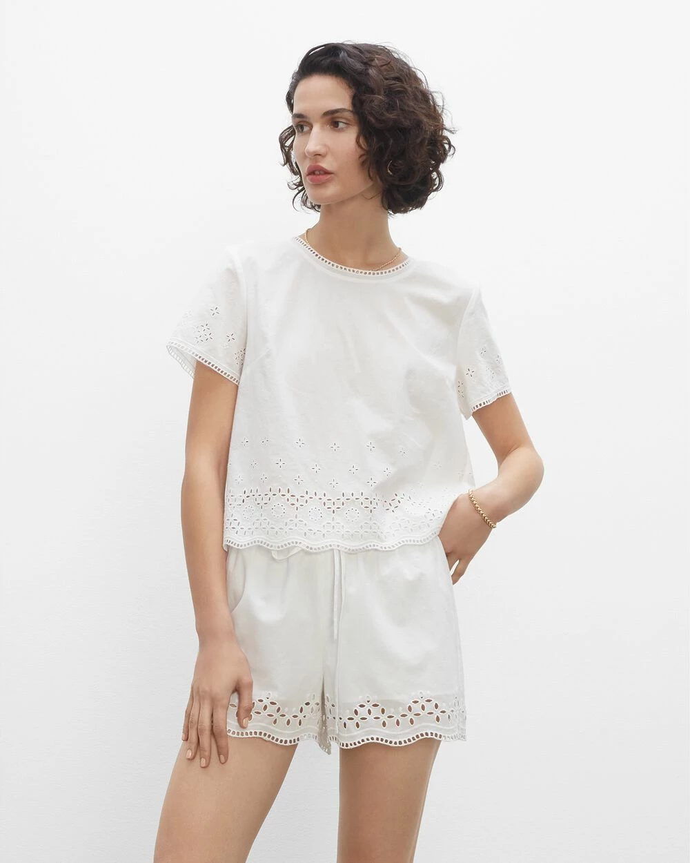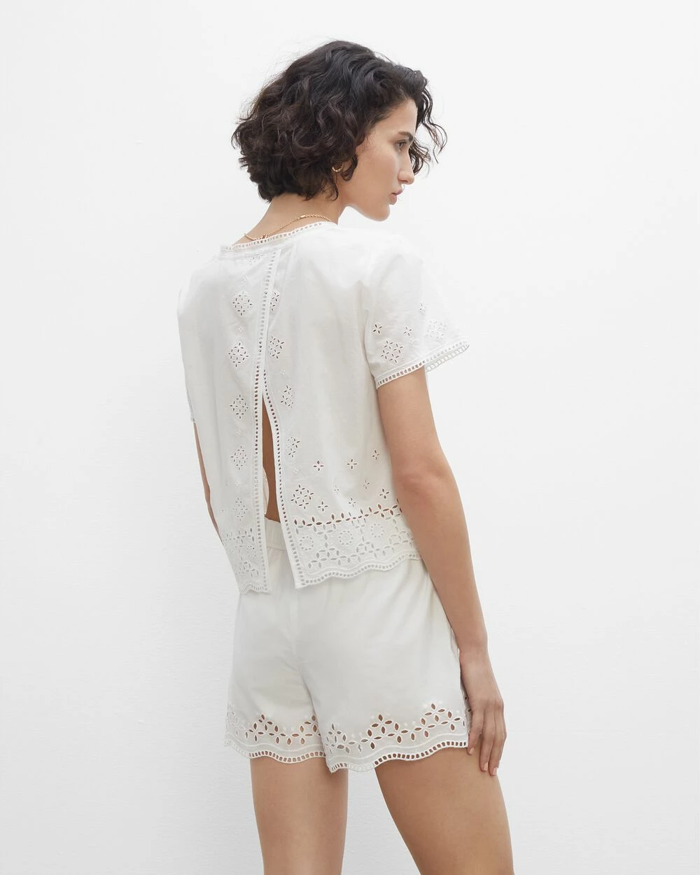 Breezy cotton and delicate embroidered eyelet detail come together in this elevated boxy tee. Pair it with our Eyelet Shorts for a whimsical summer uniform.