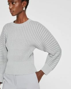- Rib-knit crewneck, cuffs, and hem; dropped shoulders; long rounded sleeves; allover pointelle stitches