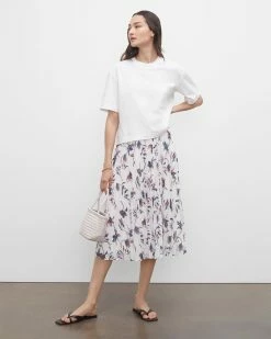 Garden party. Pretty florals dress up this crinkled wear-everywhere midi skirt, while a relaxed A-line silhouette and fluid fabrication provide that all-day comfort we always find ourselves reaching for. Detailed with allover pleats for that extra-special final touch.