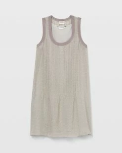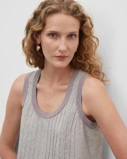 - Scoop neck; sleeveless; vertical pintuck pleats at front and back; rib-knit trims