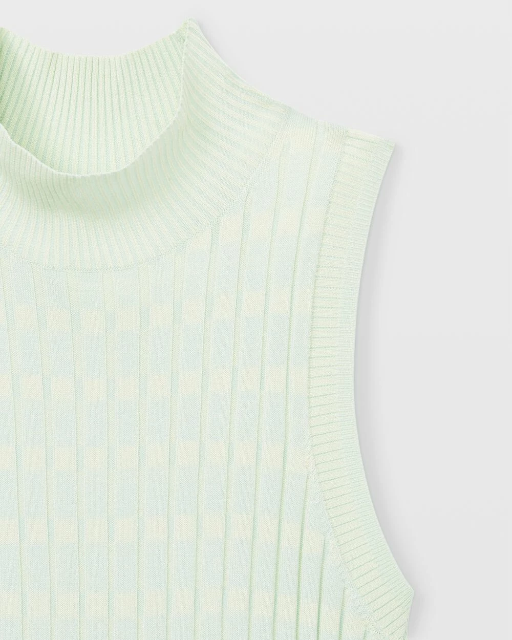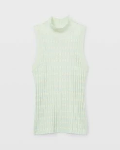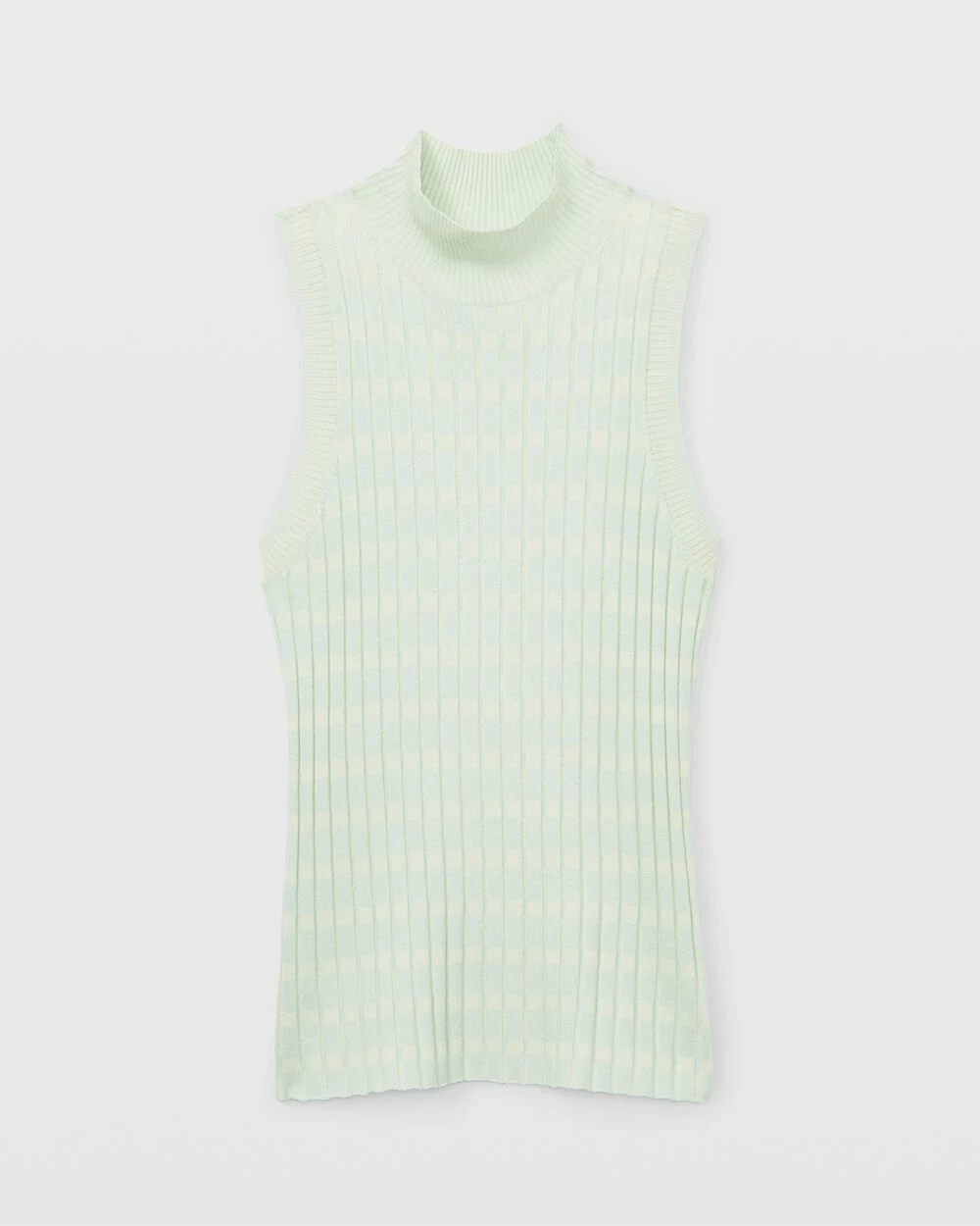 - Ribbed mock neck and armholes; sleeveless
