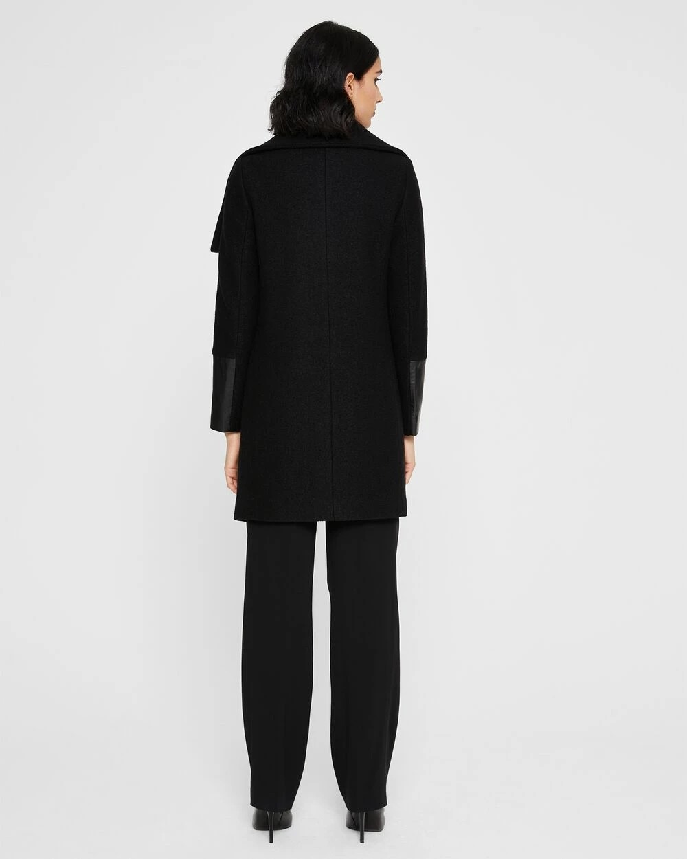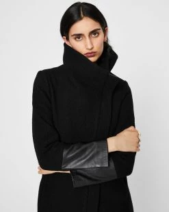 Lend an edge to it. A sleek leather trim on this best-selling, textured coat adds an element of understated cool while keeping you warm. Featuring a convertible funnel neck for all the cozy vibes. Crafted from a warm, woven wool fabric sourced from an Italian mill.