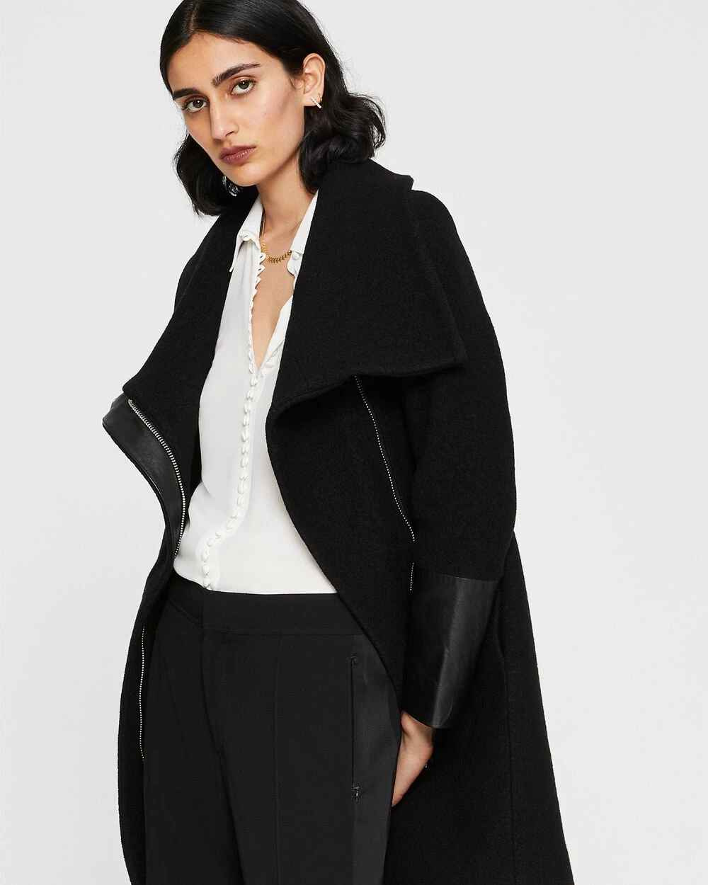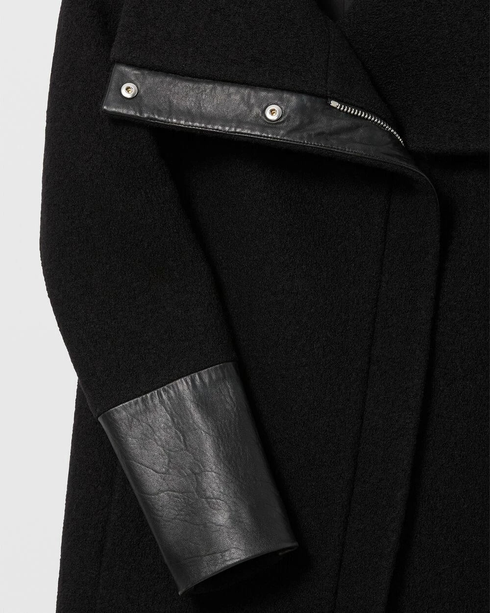 - Designed for a streamlined fit through the body. The perfect compromise between a cozy wrap coat and a chic moto jacket.