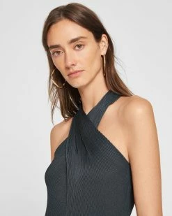 Set to stun. Make a compelling entrance with this event-worthy halter dress. With a polished silhouette and easy knit fabrication.