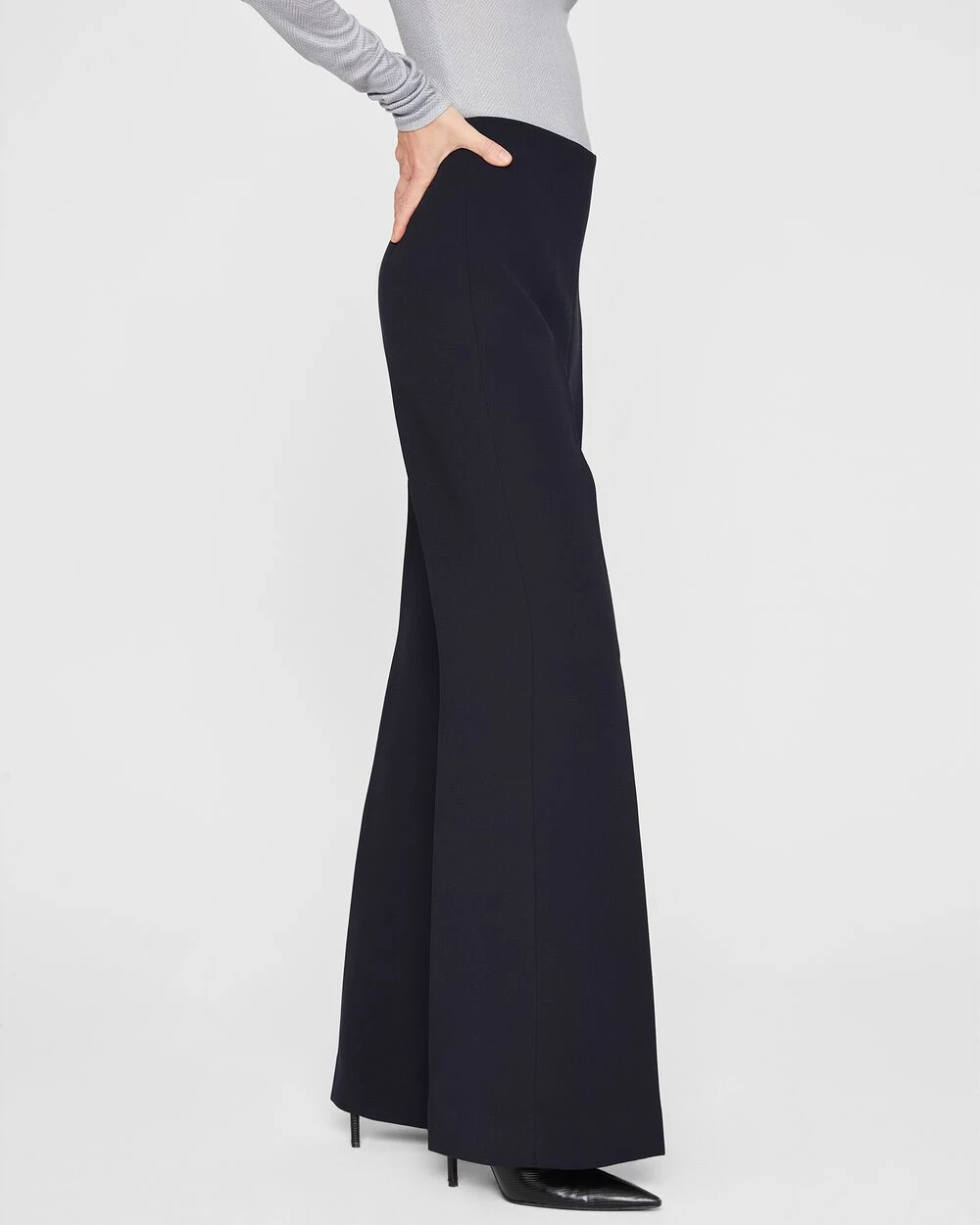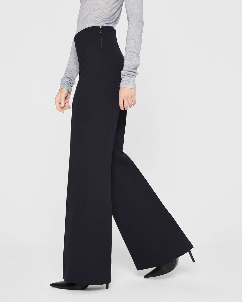- Designed for to sit high at the waist with a flared silhouette.