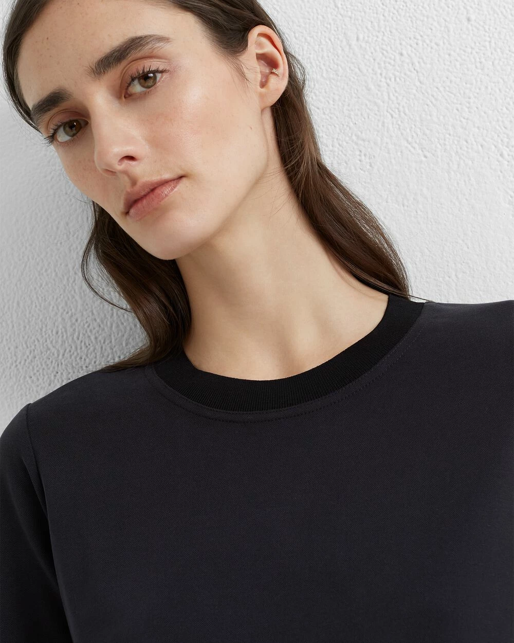 - Round neckline; pique fabric; rib-knit at neckline