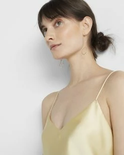Something slinky. Sleek, satiny fabric with a subtle sheen makes this v-neck camisole an effortless option for wearing alone, or over and under other layers in any season. A Club Monaco staple, ideal for casual or dressier looks. Made with recycled polyester. By turning industrial waste and post-consumer waste into new product, we are repurposing plastic and reducing our dependence on virgin petroleum-based materials.