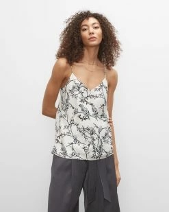 Something slinky. Sleek, satiny fabric with a subtle sheen makes this v-neck camisole an effortless option for wearing alone, or over and under other layers in any season. A Club Monaco staple, ideal for casual or dressier looks. Made with recycled polyester. By turning industrial waste and post-consumer waste into new product, we are repurposing plastic and reducing our dependence on virgin petroleum-based materials.