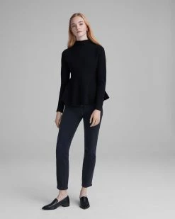 Flair for the flare. This cozy mockneck sweater is upgraded with a peplum hem for a polished look that pairs just as well with jeans as it does with pants.