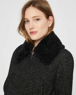 - Shell: 42% acrylic, 37% polyester, 11% wool, 9% viscose, 1% elastane; faux-fur trim: 100% recycled polyester; lining: 100% polyester; rib: 94% viscose, 5% nylon, 1% elastane