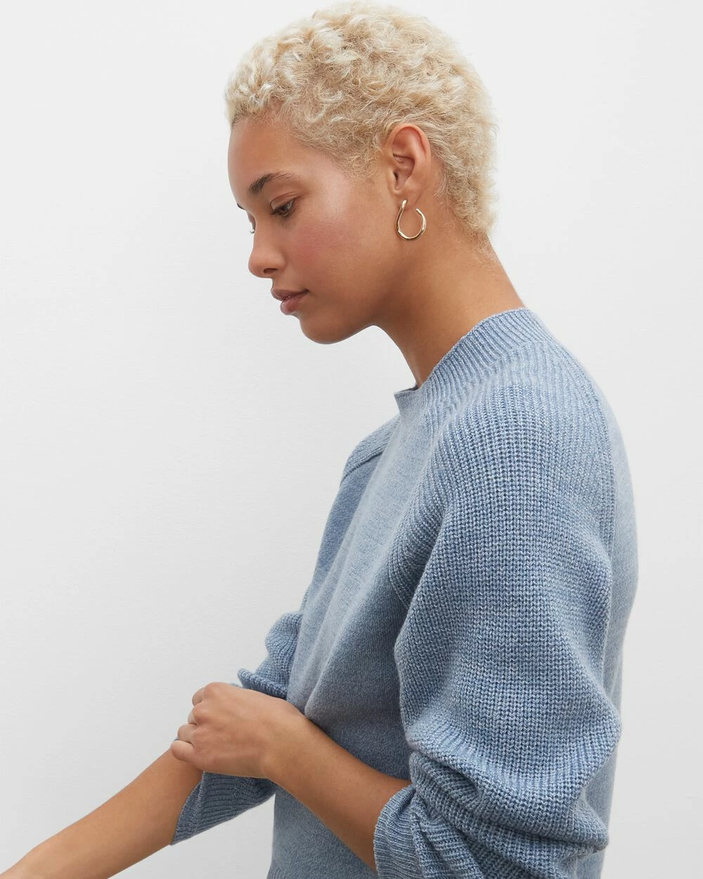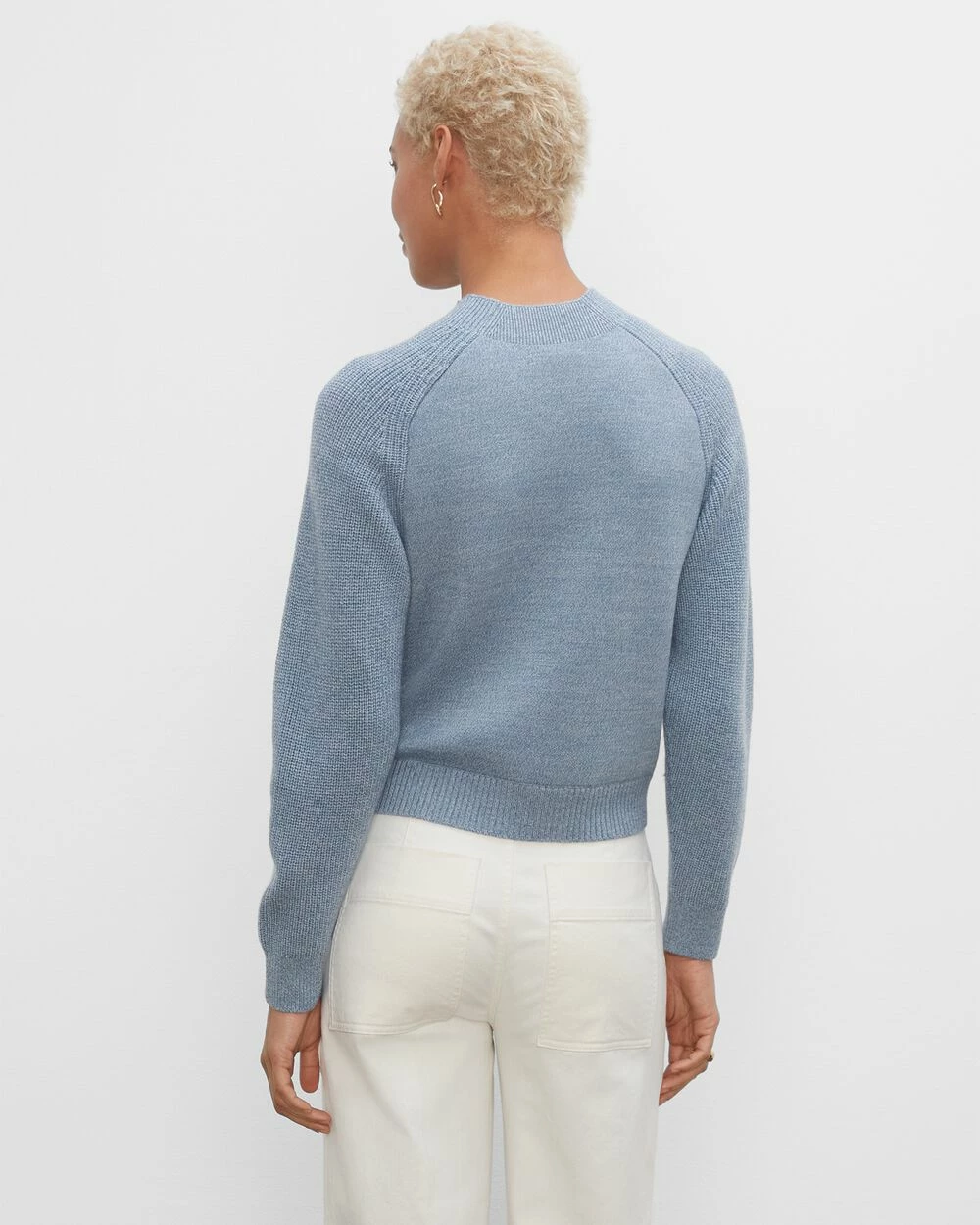 - Rib-knit crewneck, cuffs, and hem; long sleeves