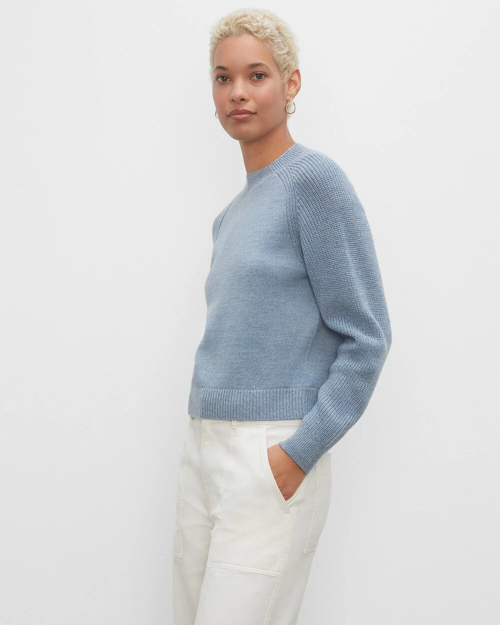 For a well-balanced wardrobe, you need a sweater that does double dutyβlike this classic crewneck. Knit from a mixed-stitch wool made with pre-twisted yarns for an interesting high-low effect, that pairs perfectly with our Utility Pants for a chic night out, or with our Lounge Pants for a cozy night in.