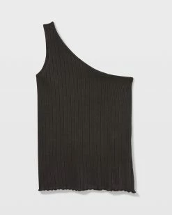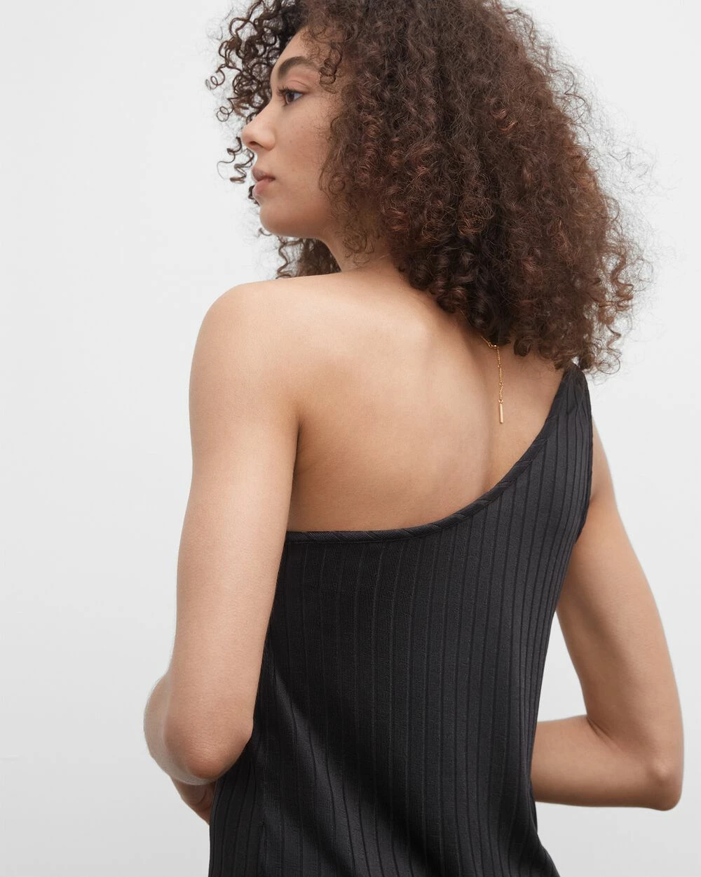For sleeker summers. A single shoulder strap and fine vertical ribbing lends a sophisticated feel to this warm-weather top. Plus, high side slits at the hem allow it to layer beautifully over practically everything.