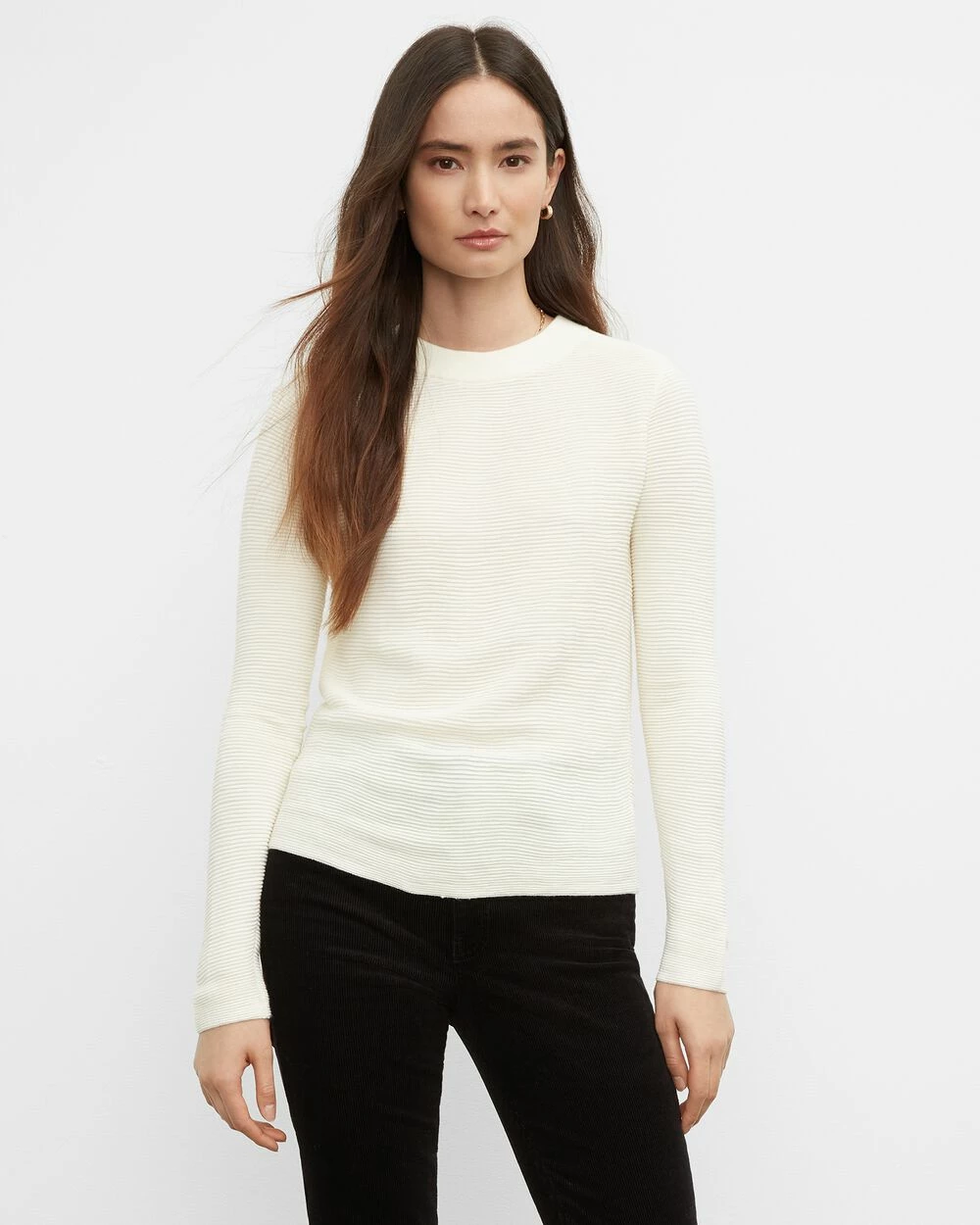 The latest crop. An Ottoman-texture knit and a cropped fit breathe new life into a simple crewneck sweater.