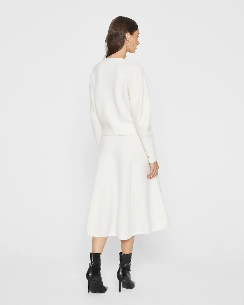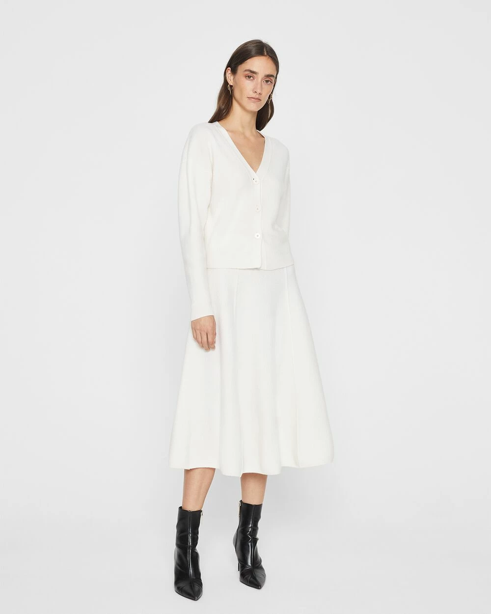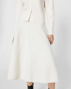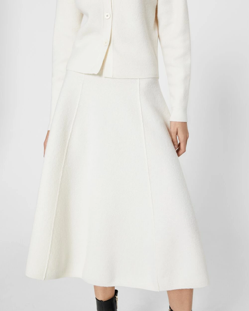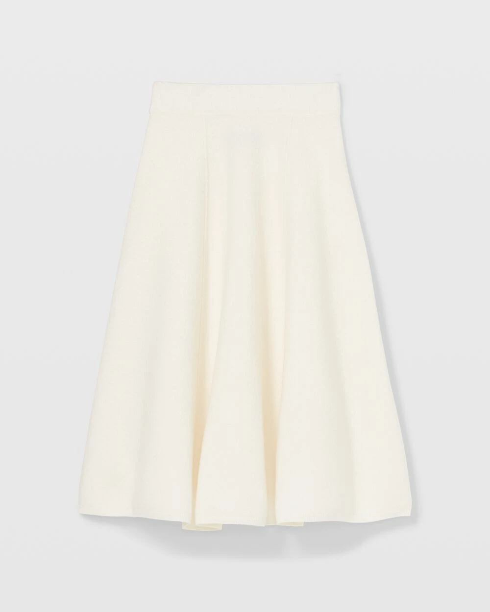 Meet the midi skirt with a flared mid-waist silhouette thatβs perfect for tucked-in tees and boxy cardigans alike. In soft boiled wool with a panel construction.