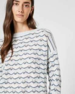 - Rib-knit boatneck, cuffs, and hem; dropped shoulders; long sleeves