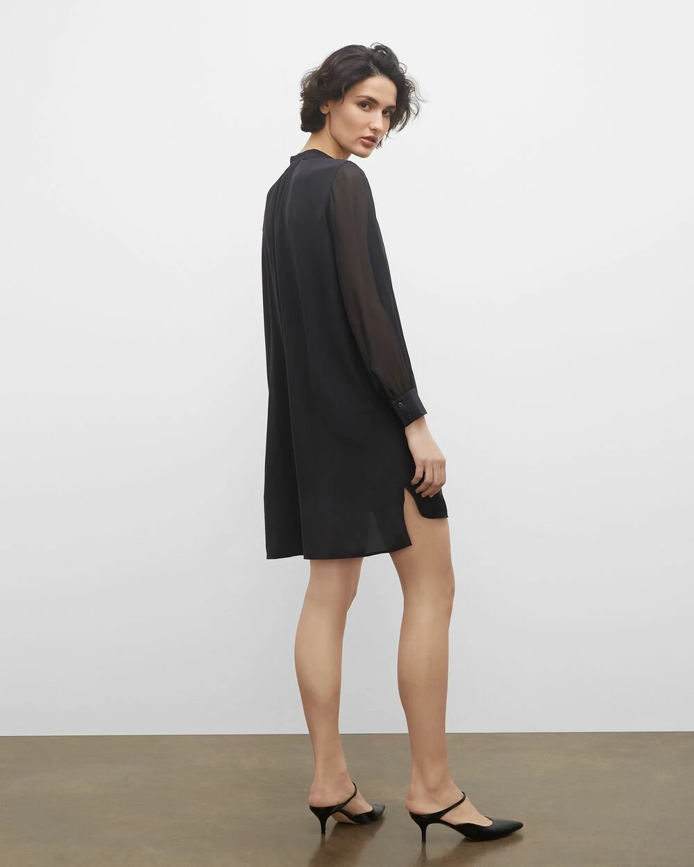 Couldn’t be easier. This popover silk tunic dress offers a true throw-on-and-go option for work and weekends alike. The mini length is perfect for showing off pretty pumps or your favorite sneakers. PS: There’s also a shirt version. Lined with recycled polyester. By turning industrial waste and post-consumer waste into new product, we are repurposing plastic and reducing our dependence on virgin petroleum-based materials.