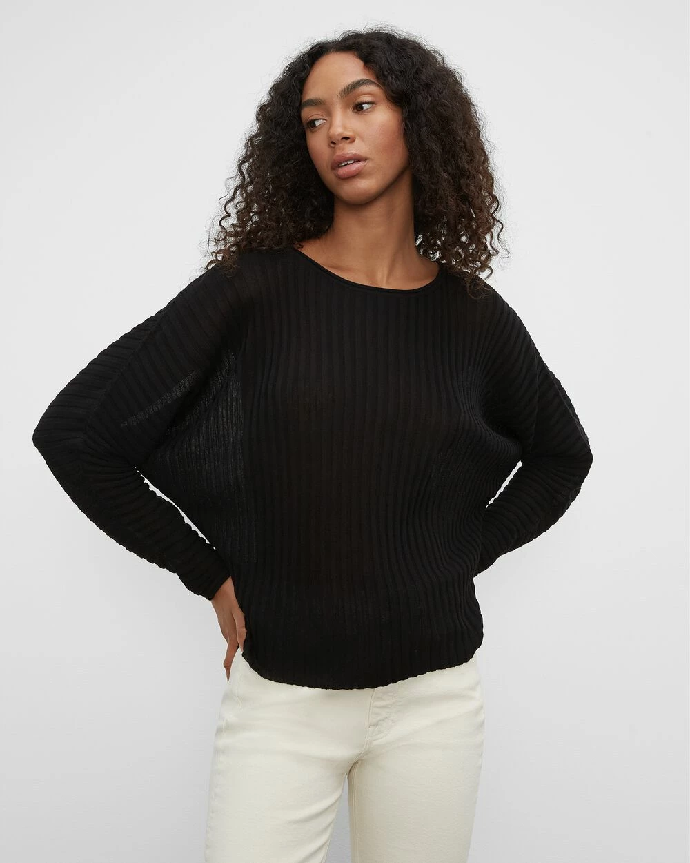 Simplicity is key. This dolman-sleeve knit sweater is designed with allover ribbing and generously sized for that slouchy but undeniably sleek look that’s so easy to style. Tuck yours into a chic midi skirt for the office or pair with leggings for a cozy day in.