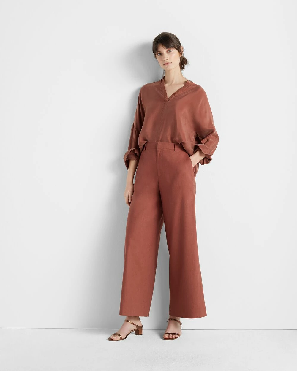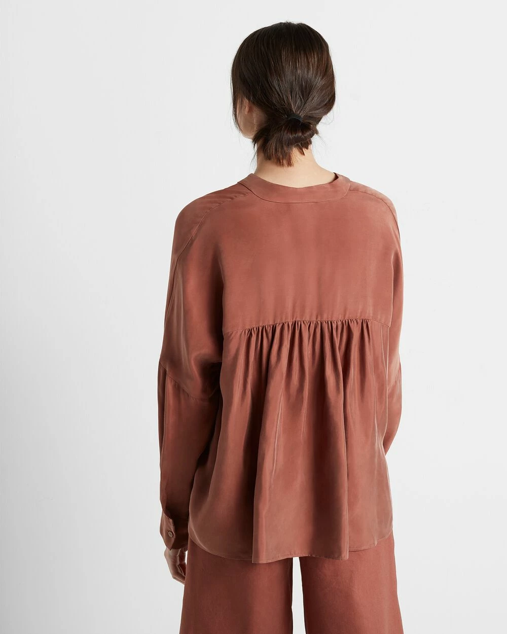 Pop on over. Gathered details at the back yoke lend movement to this relaxed interpretation of a long-sleeve shirt.