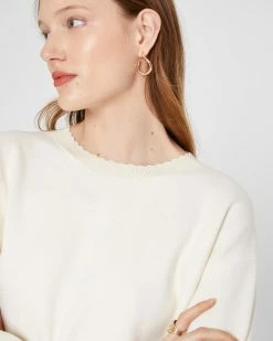 - Scalloped neckline; dropped shoulders; long sleeves; rib-knit cuffs and hem