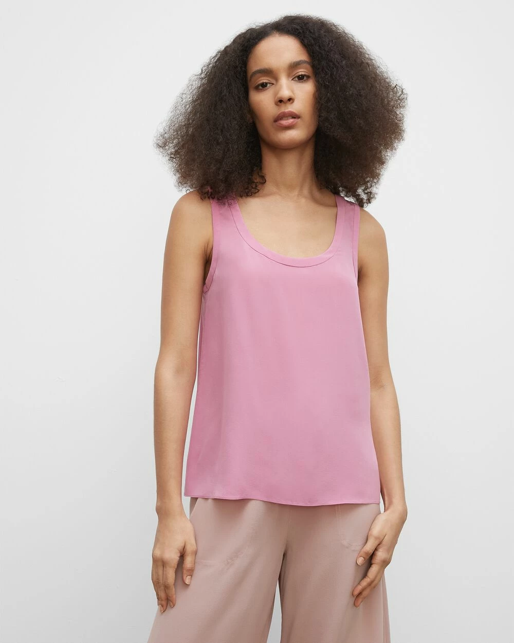 The racerback, refined. A casual tank top dresses up in luxe silk. This elevated staple is great for layering but shines just as bright when worn solo.