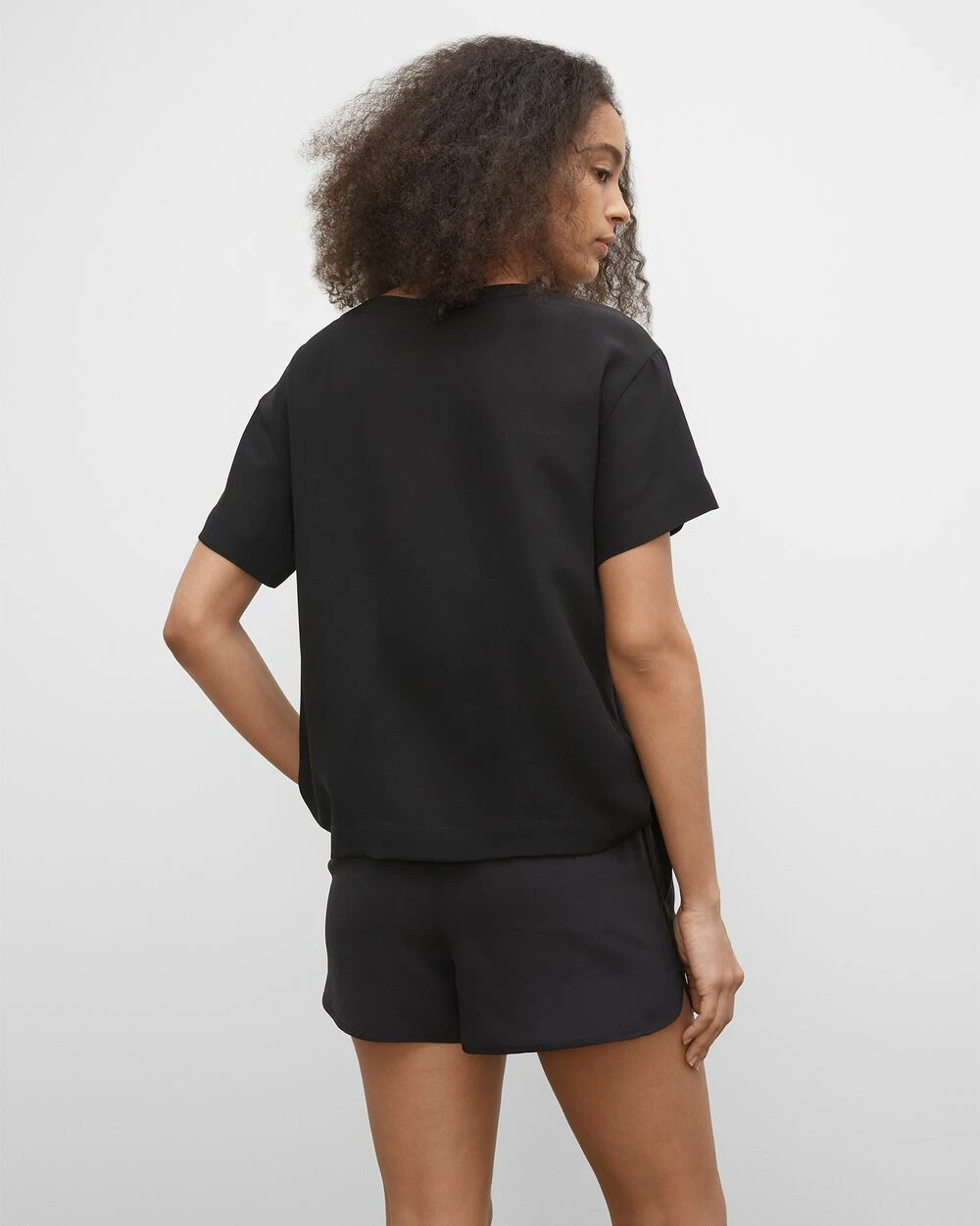 Taking the tee to new heights. The classic crewneck short-sleeve T-shirt in silk crepe for a more elegant look and feel. The relaxed silhouette makes it perfect for tucking into your favorite bottoms. Pair with our Silk Jogging Shorts for a uniform look.