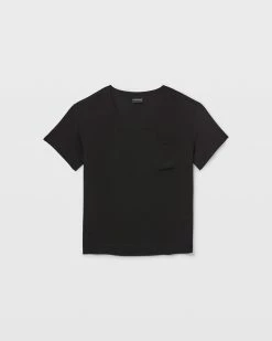 - Crewneck; one chest pocket; short sleeves