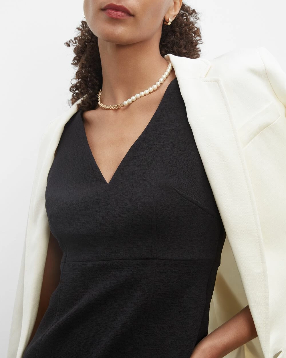A dress for all occasions. Subtle texture livens up the classic little black dress while a hint of stretch keeps it comfortable all day (or night!) long.