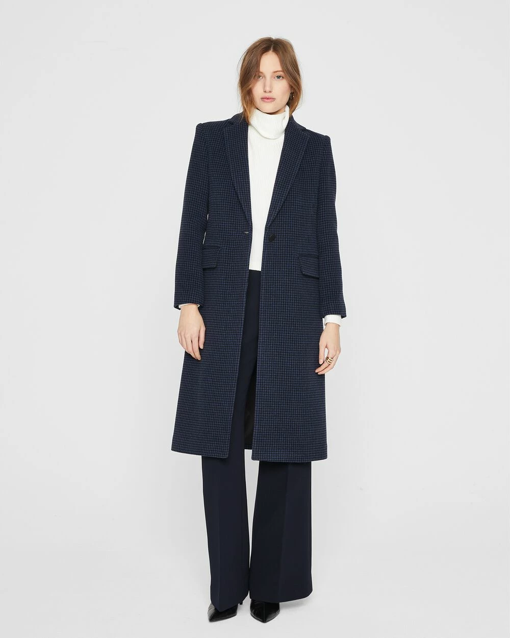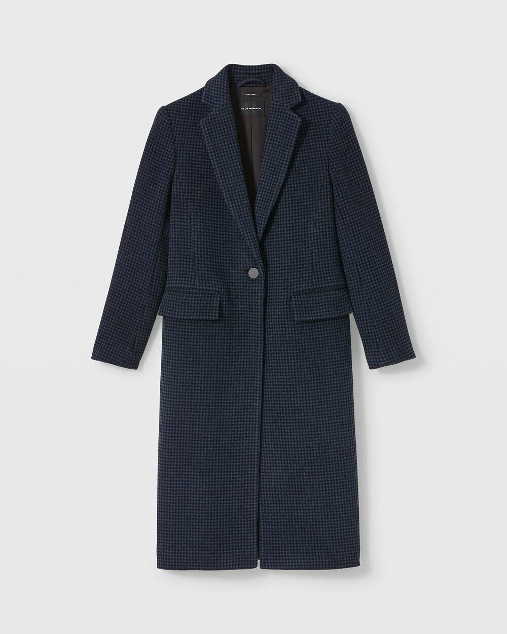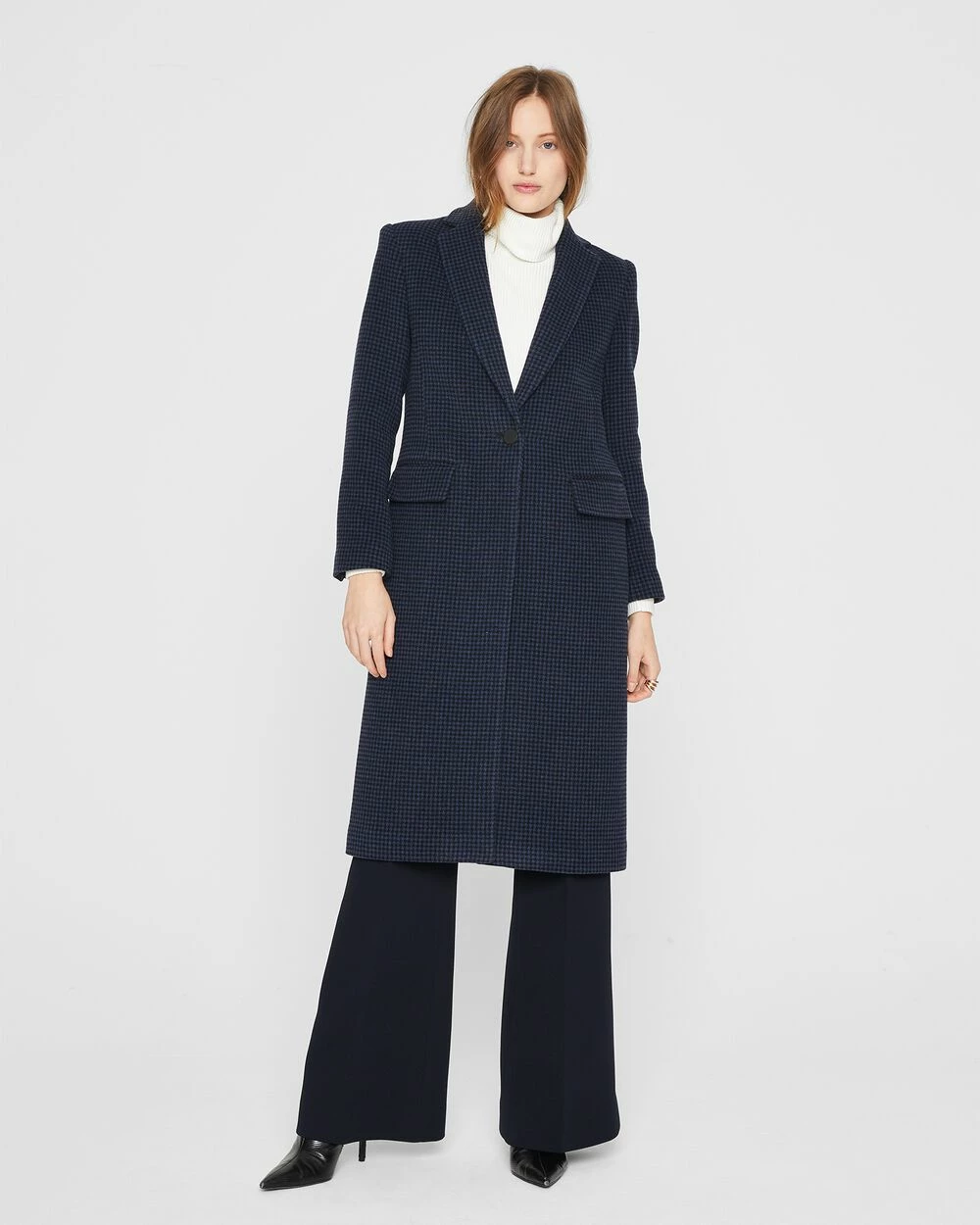 Put it in neutral. A traditional black-and-white houndstooth pattern updates the timeless silhouette of this best-selling coat that works season after season. Crafted from a warm, woven wool-blend fabric sourced from an Italian mill.