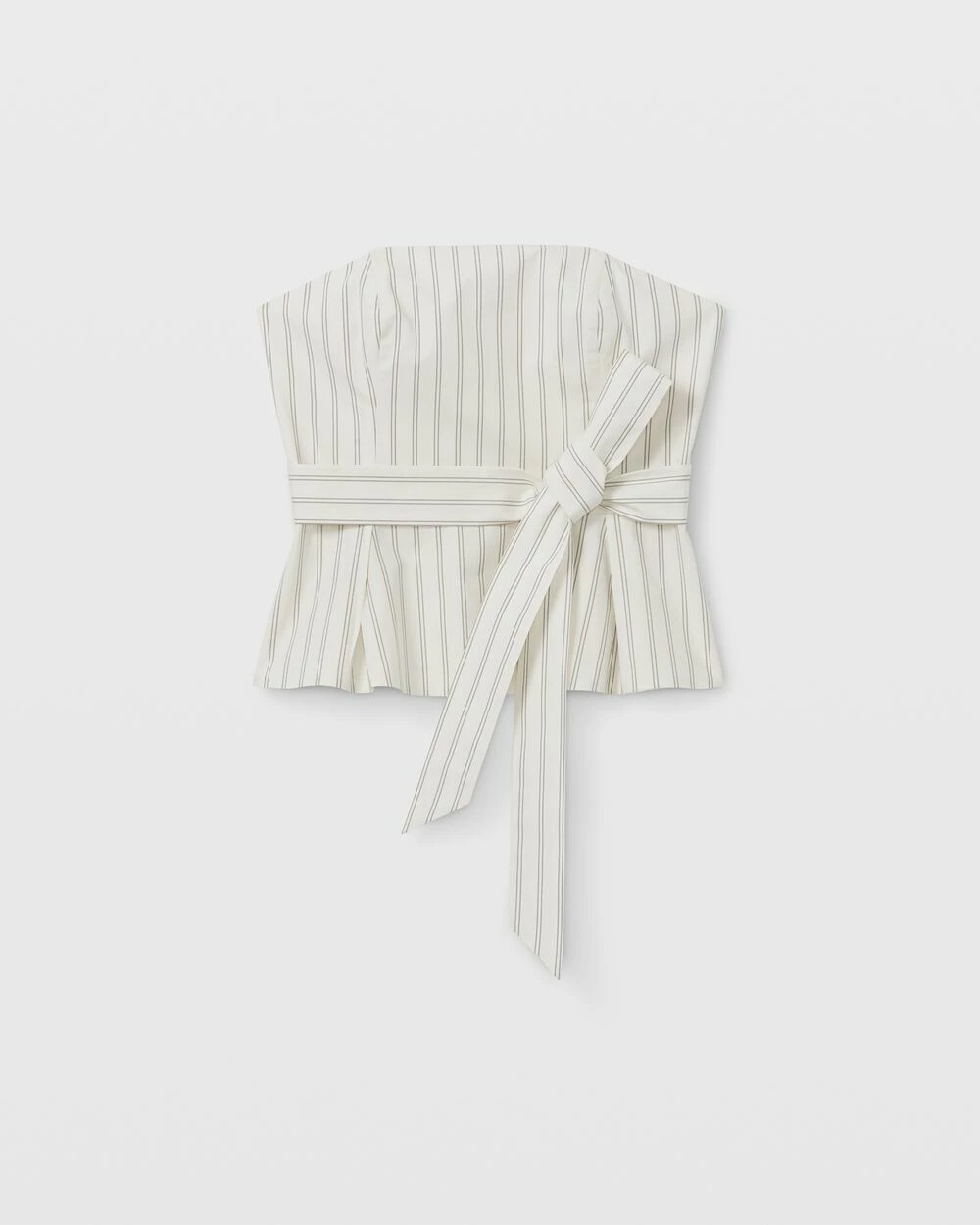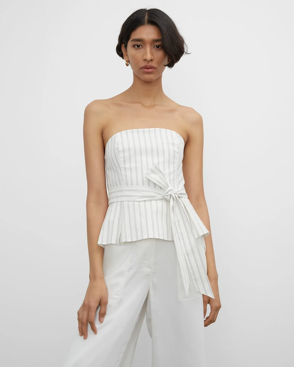 Ditch the straps. This shoulder-baring top complements everything from your most casual shorts to your most tailored pants. In stretch cotton for softly structured comfort. An optional belt gives a perfectly tailored look. By buying cotton products from us, you’re supporting more sustainable cotton farming. Learn more at bettercotton.org/learnmore