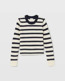 Soon to be your new favorite knit, this cashmere crewneck sweater is the ideal blend of cozy and classic. A honeycomb stitch gives this pullover substance, while the nautical stripes add timeless appeal that complements practically everything.