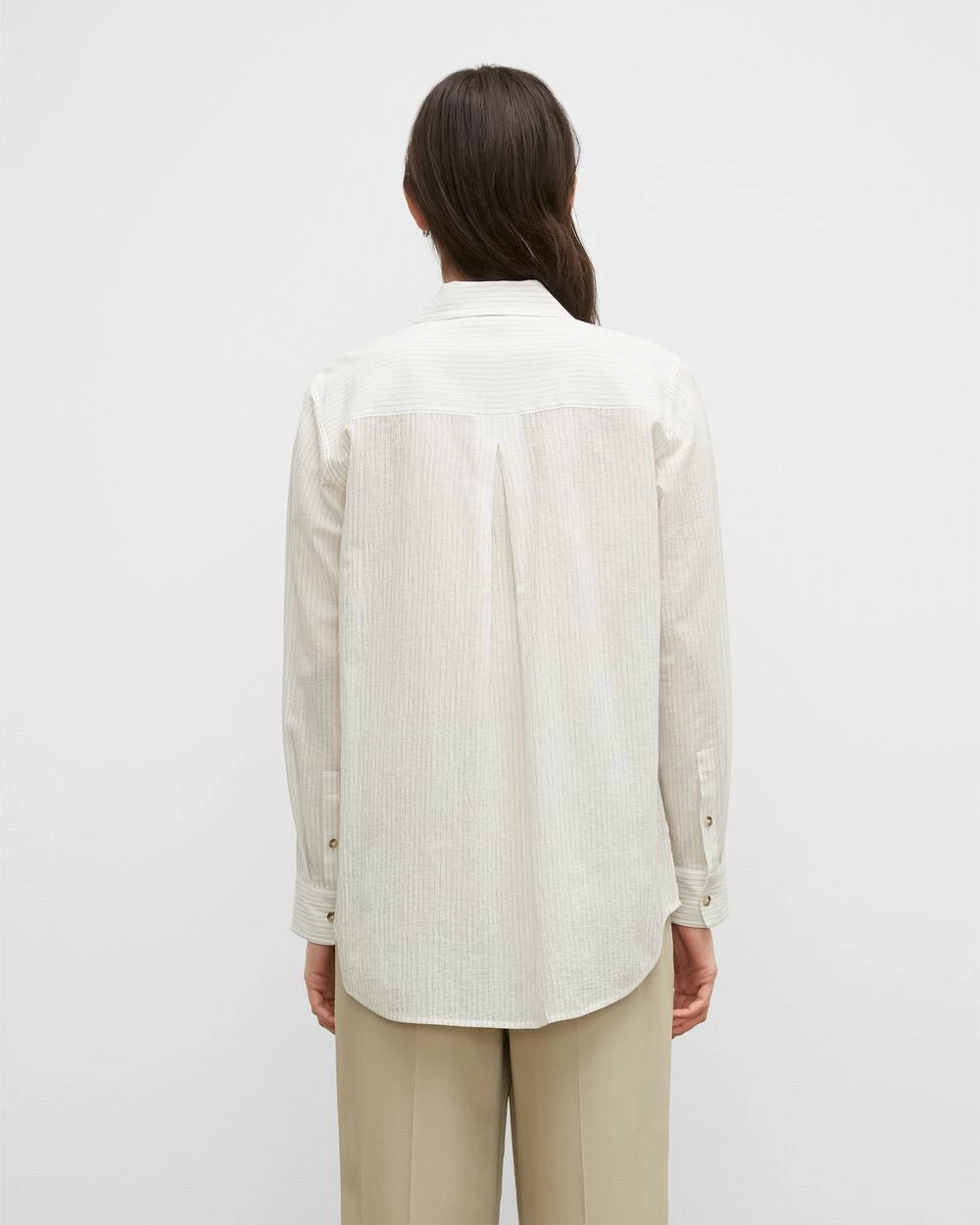 Relaxed update. A textured, gauzy fabric in breathable cotton lends itself to a fluid finish in one of our best-selling silhouettes. Works well with everything from a bikini to a tailored skirt.