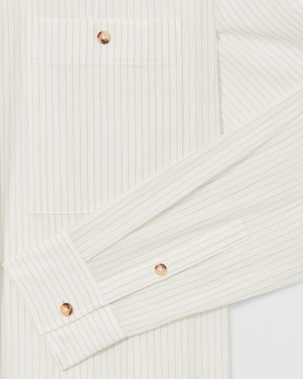 - In a fine stripe pattern, our reinterpretation of uniform dressing
