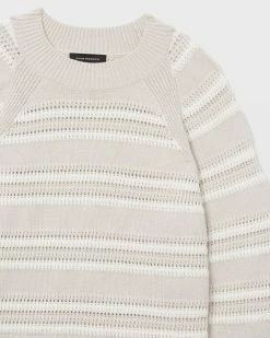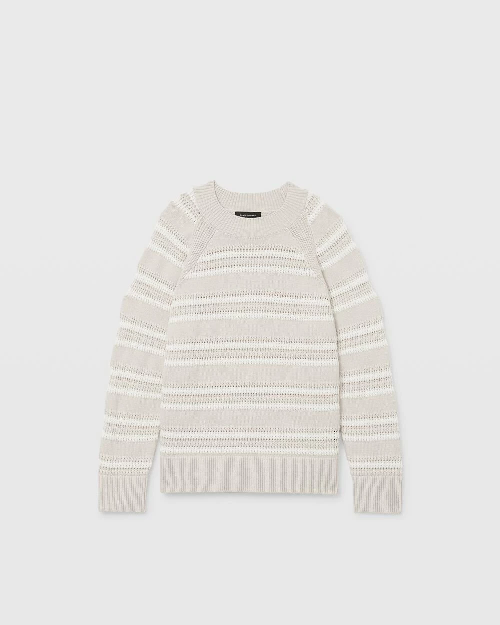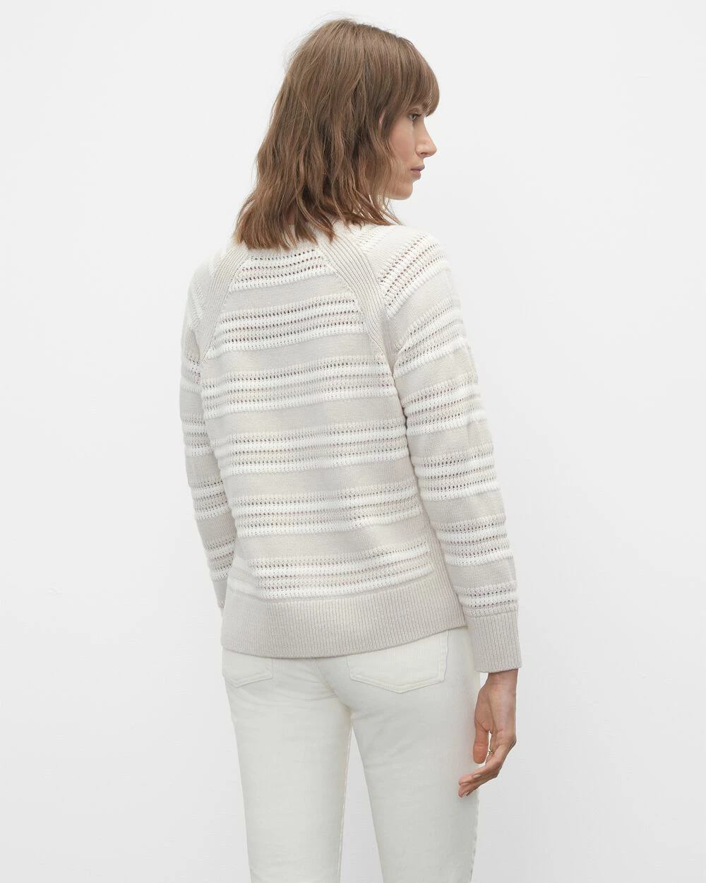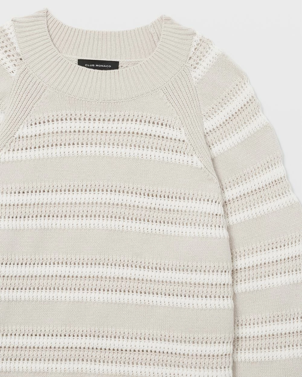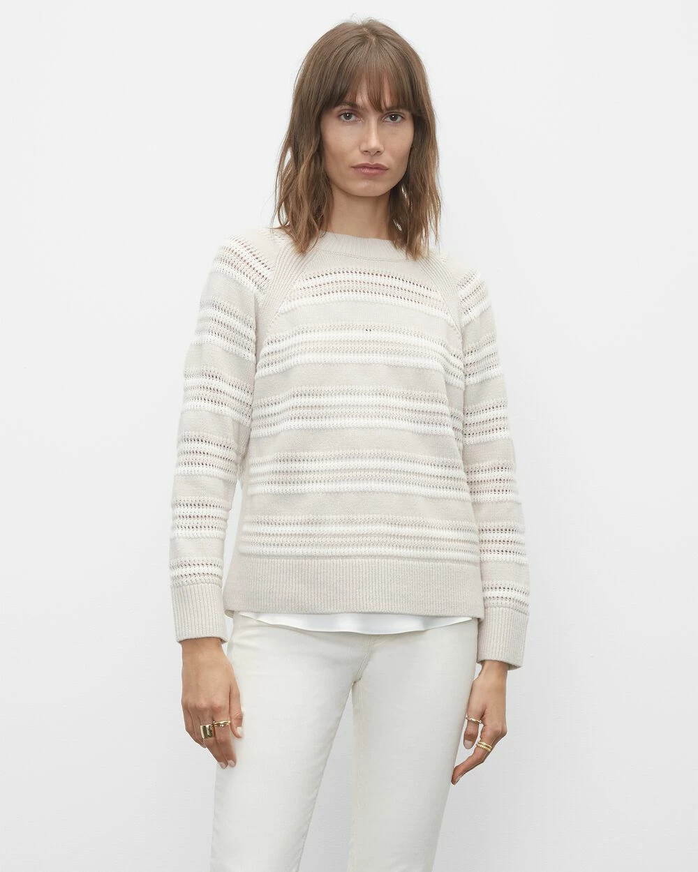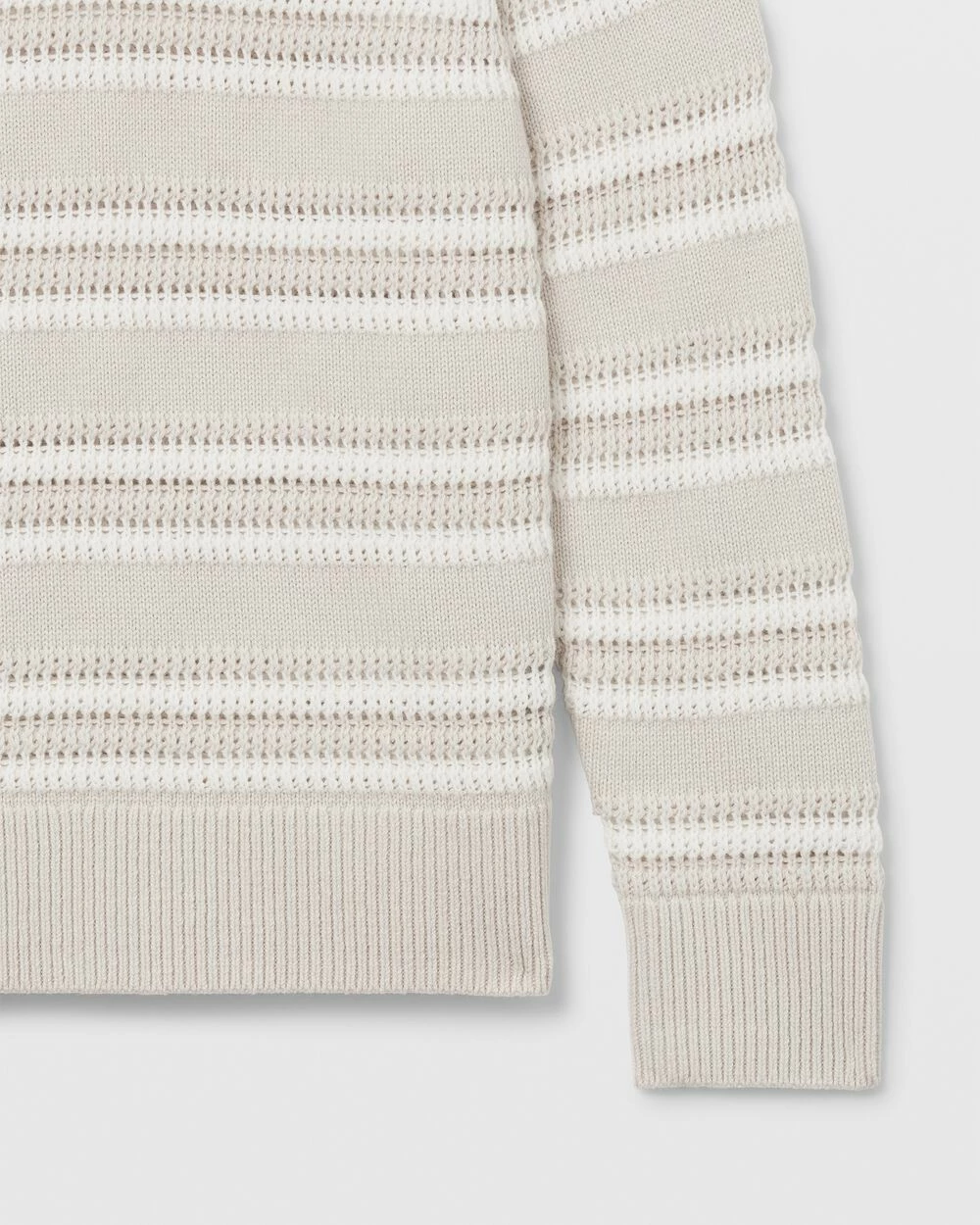 Make a point. Pretty pointelle stitches knit in a tonal stripe pattern make a subtle statement on this crewneck sweater. By buying cotton products from us, you’re supporting more sustainable cotton farming. Learn more at bettercotton.org/learnmore