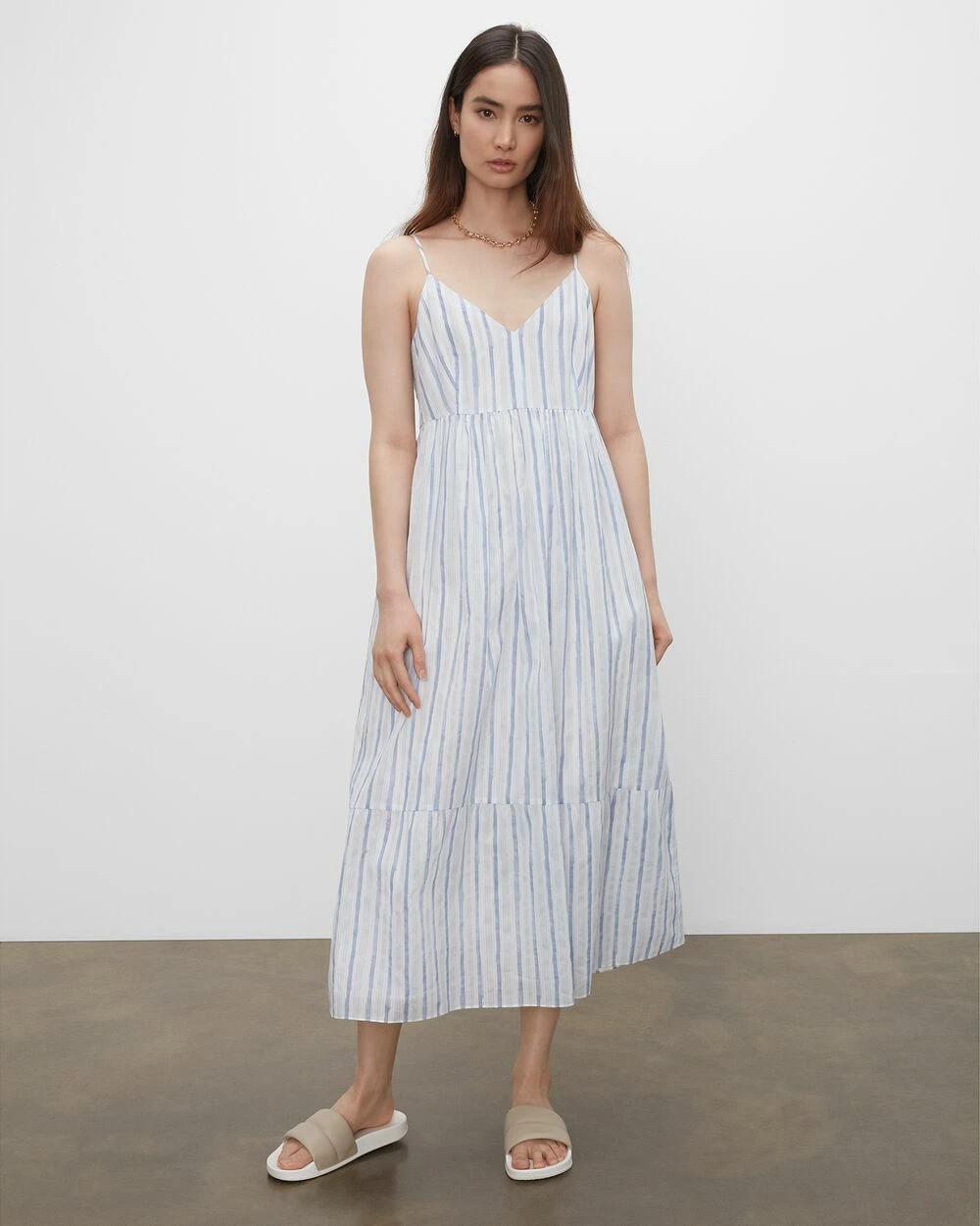 The quintessential maxi dressβa summer go-toβbut with elevated details for day-to-night versatility. In a cool, comfortable, lightweight, semi-sheer cotton with our original stripe pattern, smocked side panels, and adjustable straps for the perfect fit and all-day comfort.