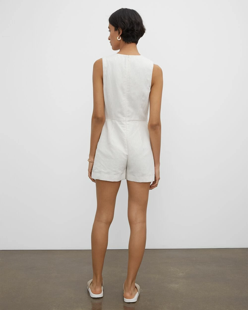 Wrap time. The elegance of a wrap dress in front with the ease of a romper in back makes for one-step dressing. For a polished but playful look.