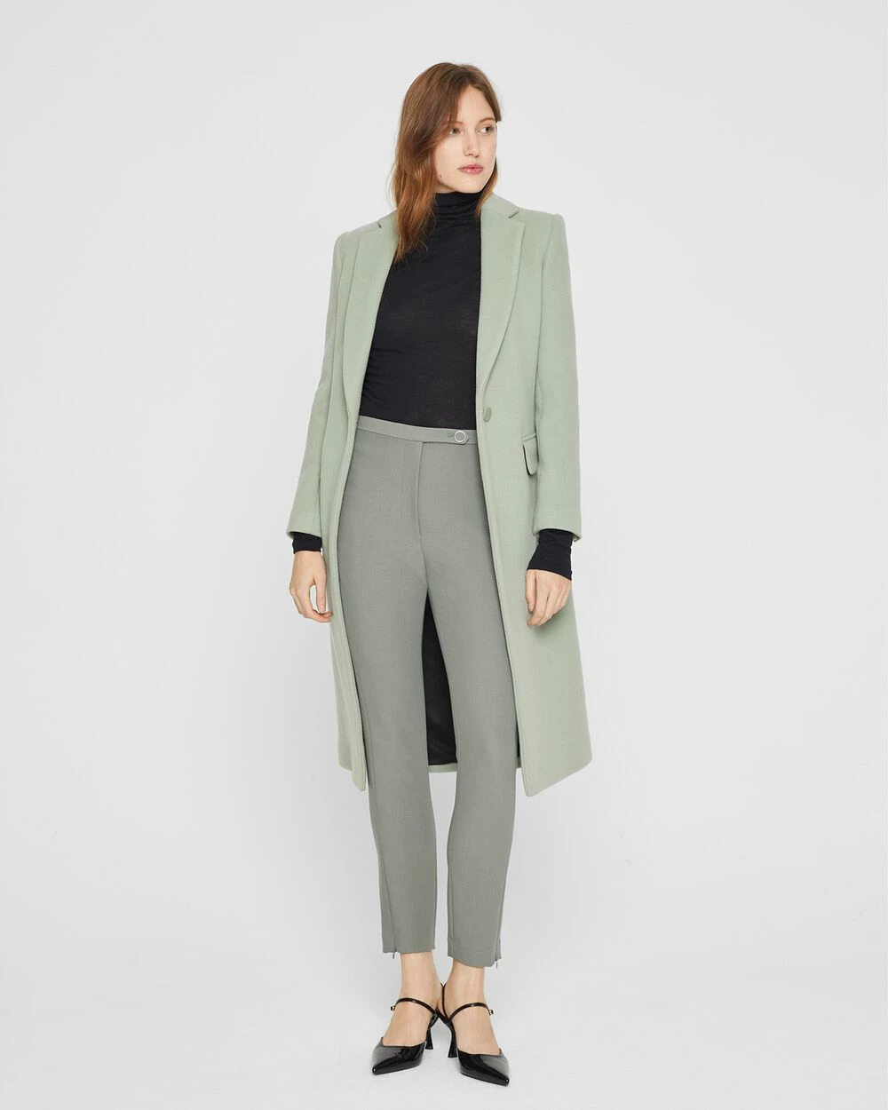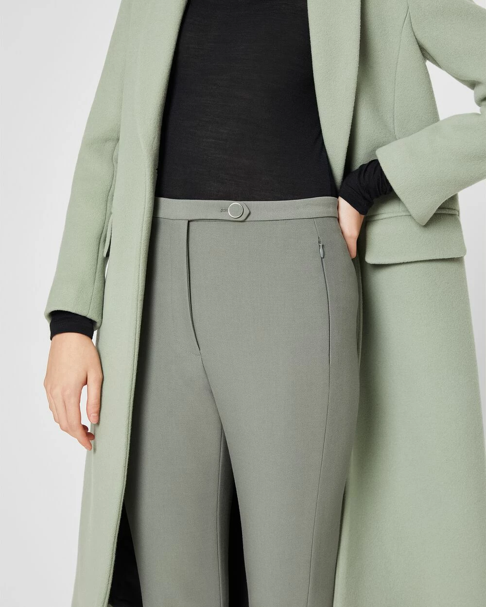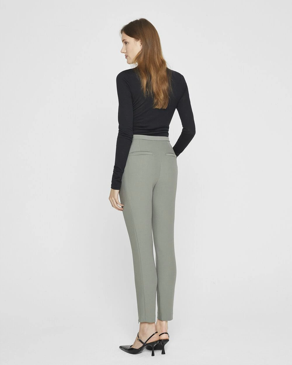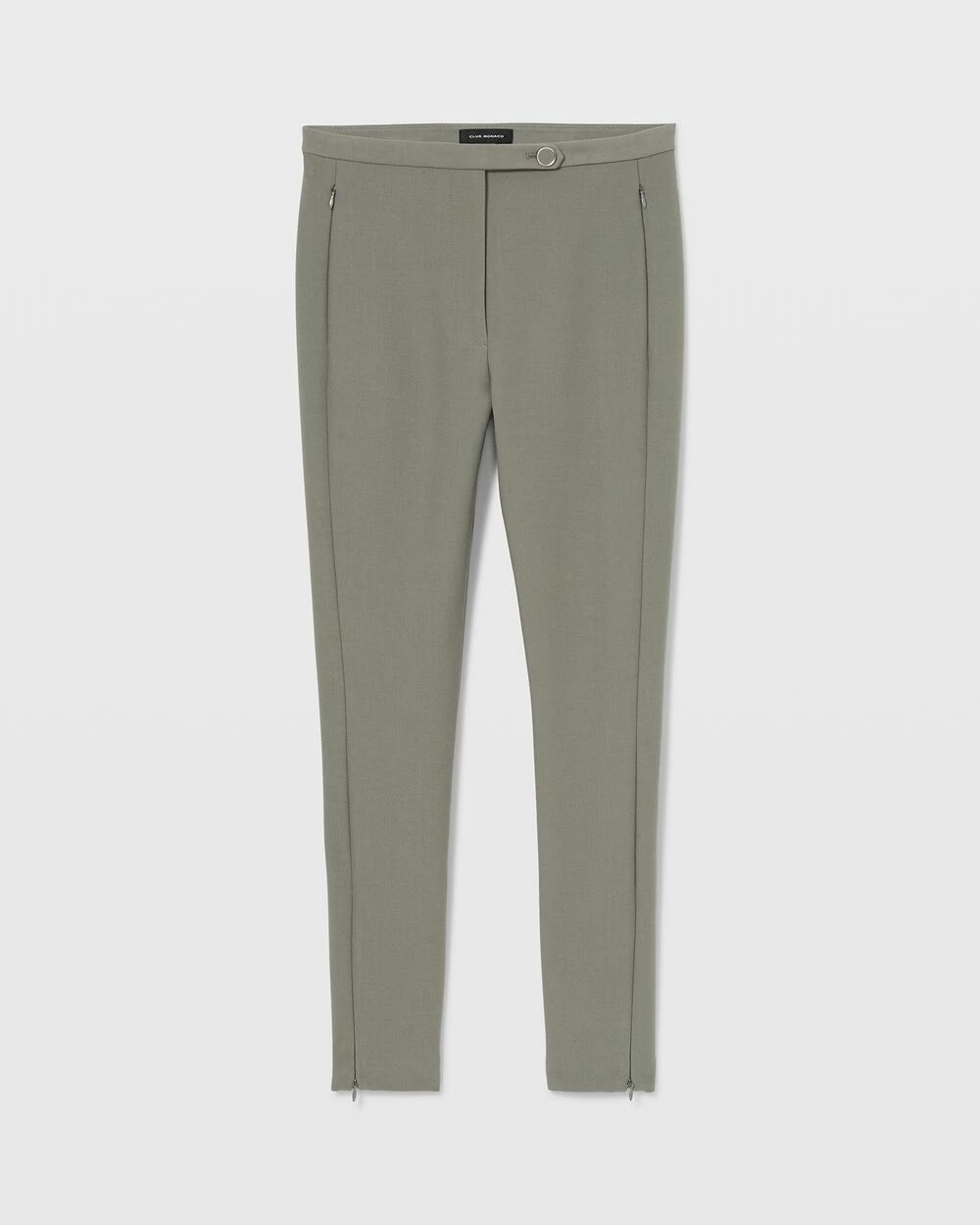 A slim pair of pants strikes the perfect balance between stretchy and sleek. Designed with a trouser-inspired button-tab and versatile zip cuffs. Tuck in a blouse and add some elegant accessories for the ideal office-to-after-hours ensemble.