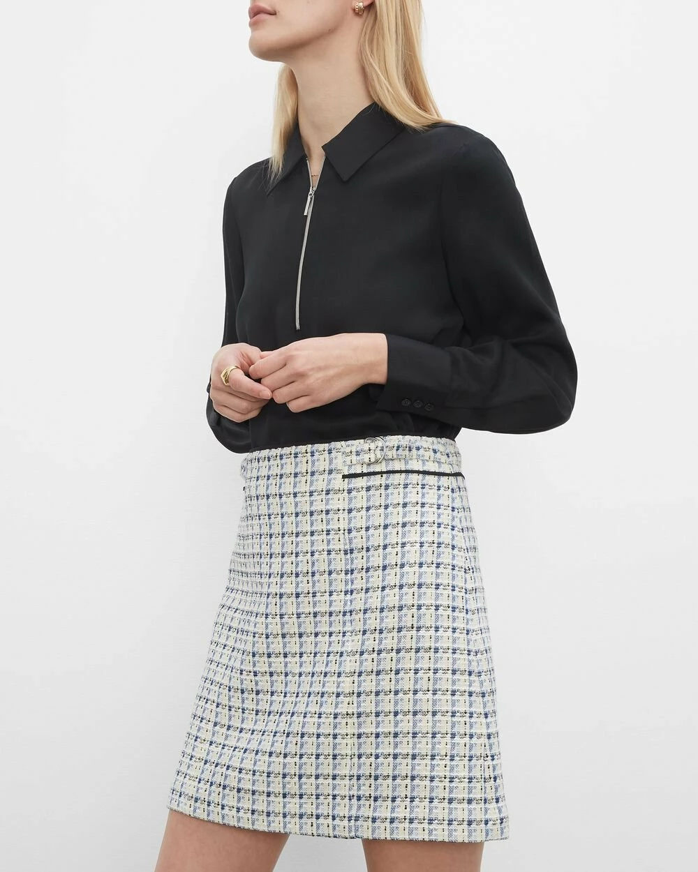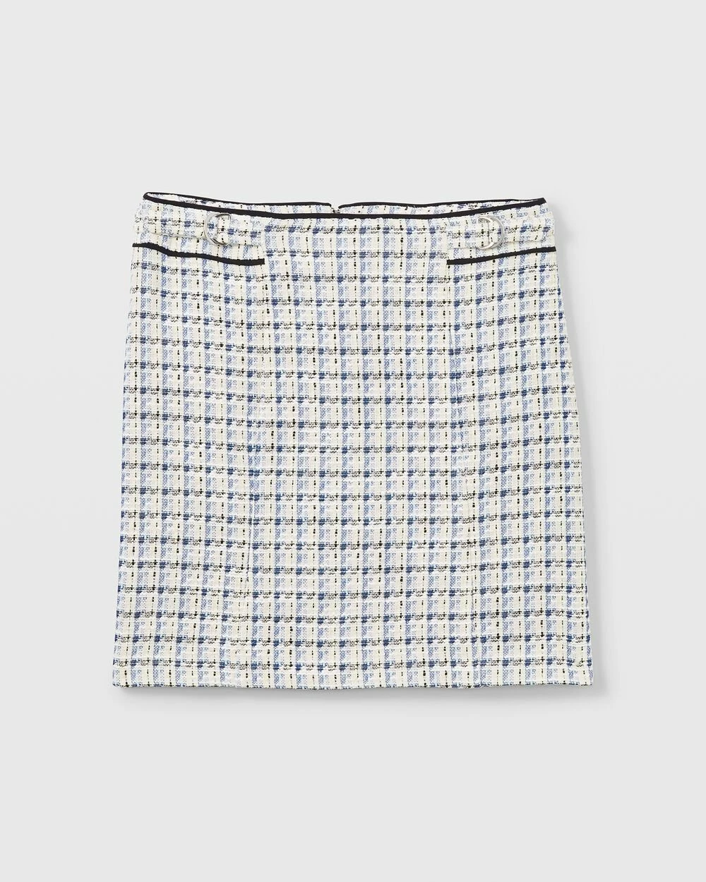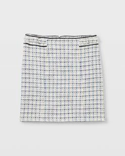 The perfect combination of tailored and textured. This tweedy mini skirt is distinguished by D-ring belted details at the waist and its classic silhouette. Match it back to our Textured Cutaway Jacket or Shirt Jacket for a more traditional take on suiting. Lined with recycled polyester. By turning industrial waste and post-consumer waste into new product, we are repurposing plastic and reducing our dependence on virgin petroleum-based materials.