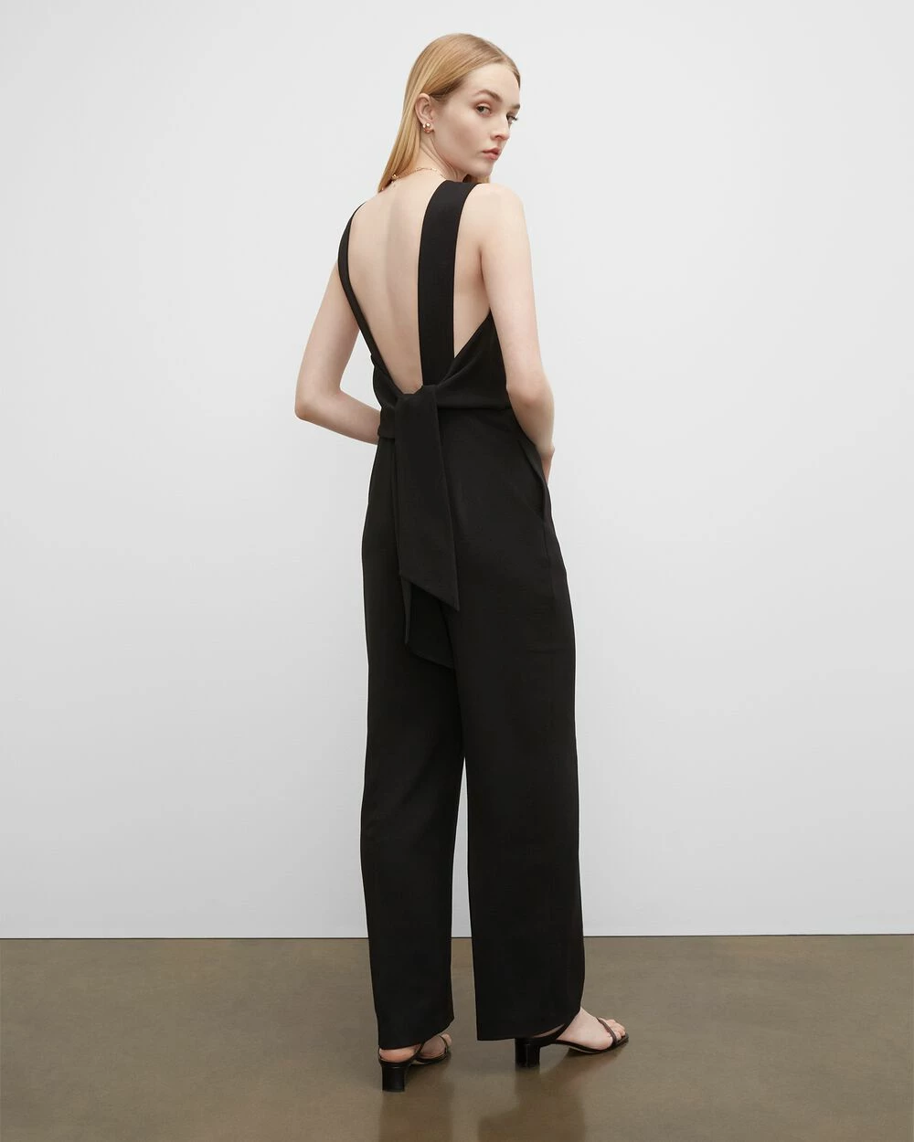 All-in-one. When a simple dress won’t do, this jumpsuit creates an ultra-chic look fit for all occasions. With darting at the bust and ties at the back for delicate structure.