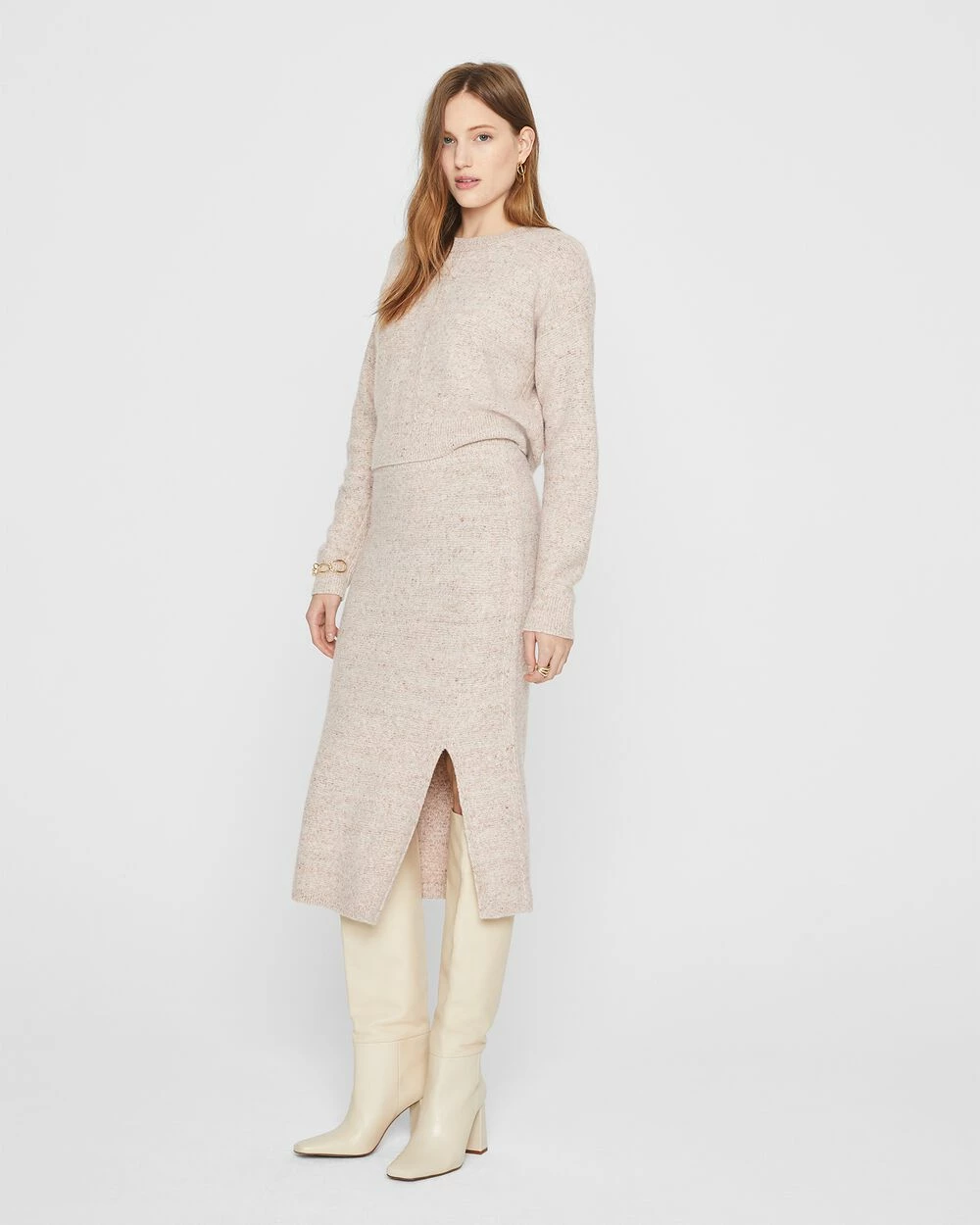 A tweedy knit made from Italian yarns gives the reliable crewneck sweater textural interest. Designed with a hint of stretch and a cropped length. Make it a set with the matching Tweed Slit Skirt.