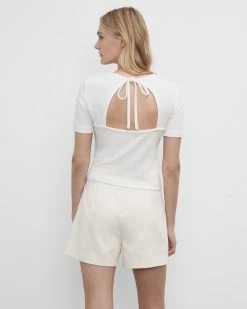 Wholesale ๐งจ Club Monaco ๐ฉ Women Short Sleeve Open Back Top Blanc De Blanc ๐